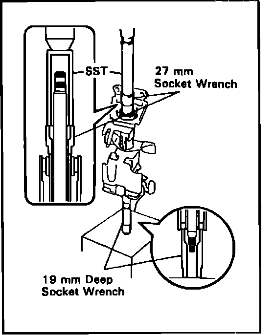 (f) Using SST, a 27 mm socket and a 19 mm deep socket, press in the main shaft.