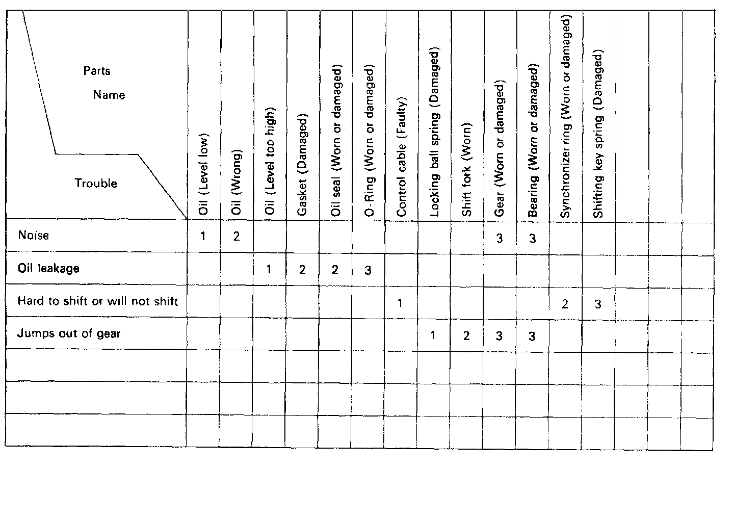 You will find the troubles easier using the image shown. In this image, each number shows the priority of causes in troubles. Check each part in order. If necessary, replace these parts.