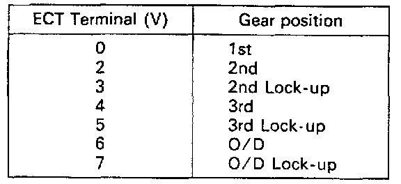 - During a road test (above 10 km/h or 6 mph) check that voltage at the Tt terminal is as indicated below for each up-shift position.