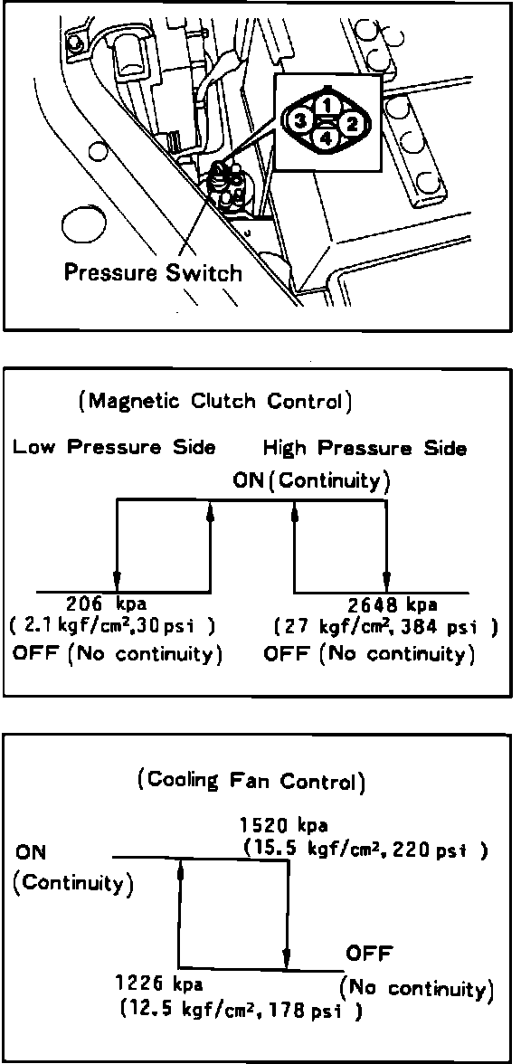 2. Check continuity between terminals when system pressure changes as shown on image chart.