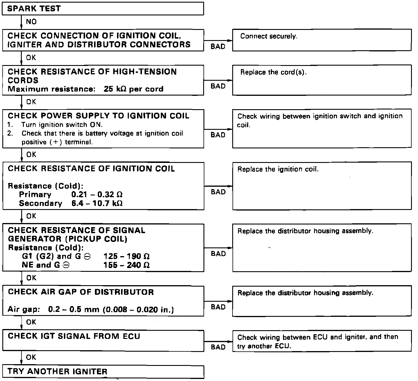 HINT: To prevent gasoline from being injected from injectors during this test, crank the engine for no more than 1 - 2 seconds at time.