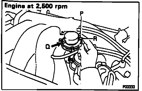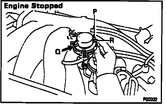 3. Disconnect vacuum hoses from ports P, Q and R of the vacuum modulator.