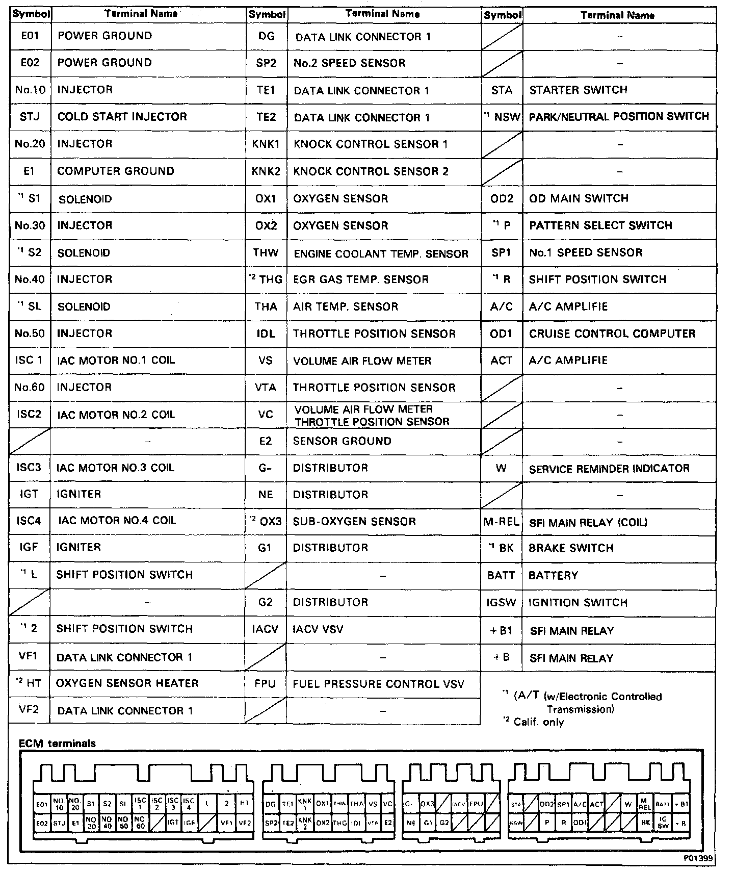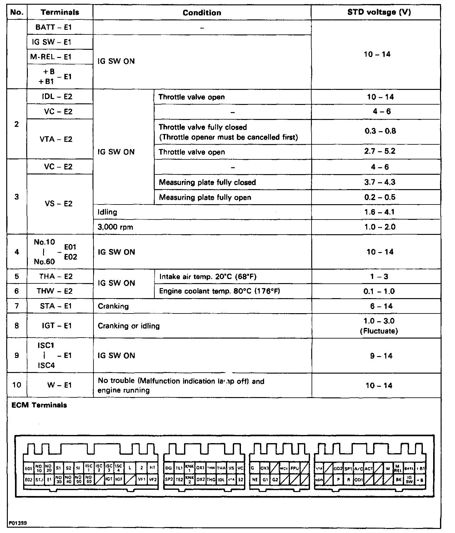 Circuit Test Charts (For Trouble Code Diagnosis)