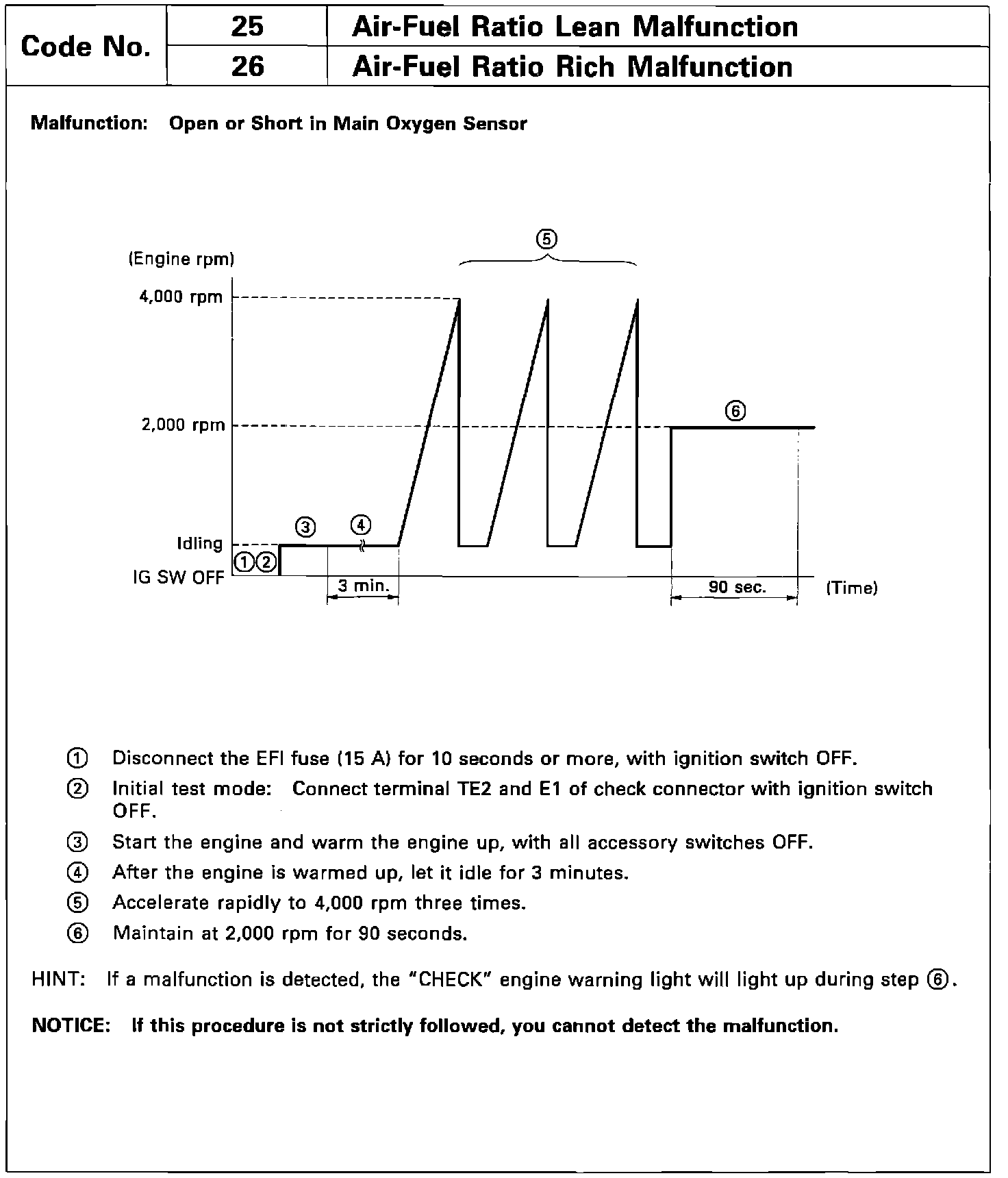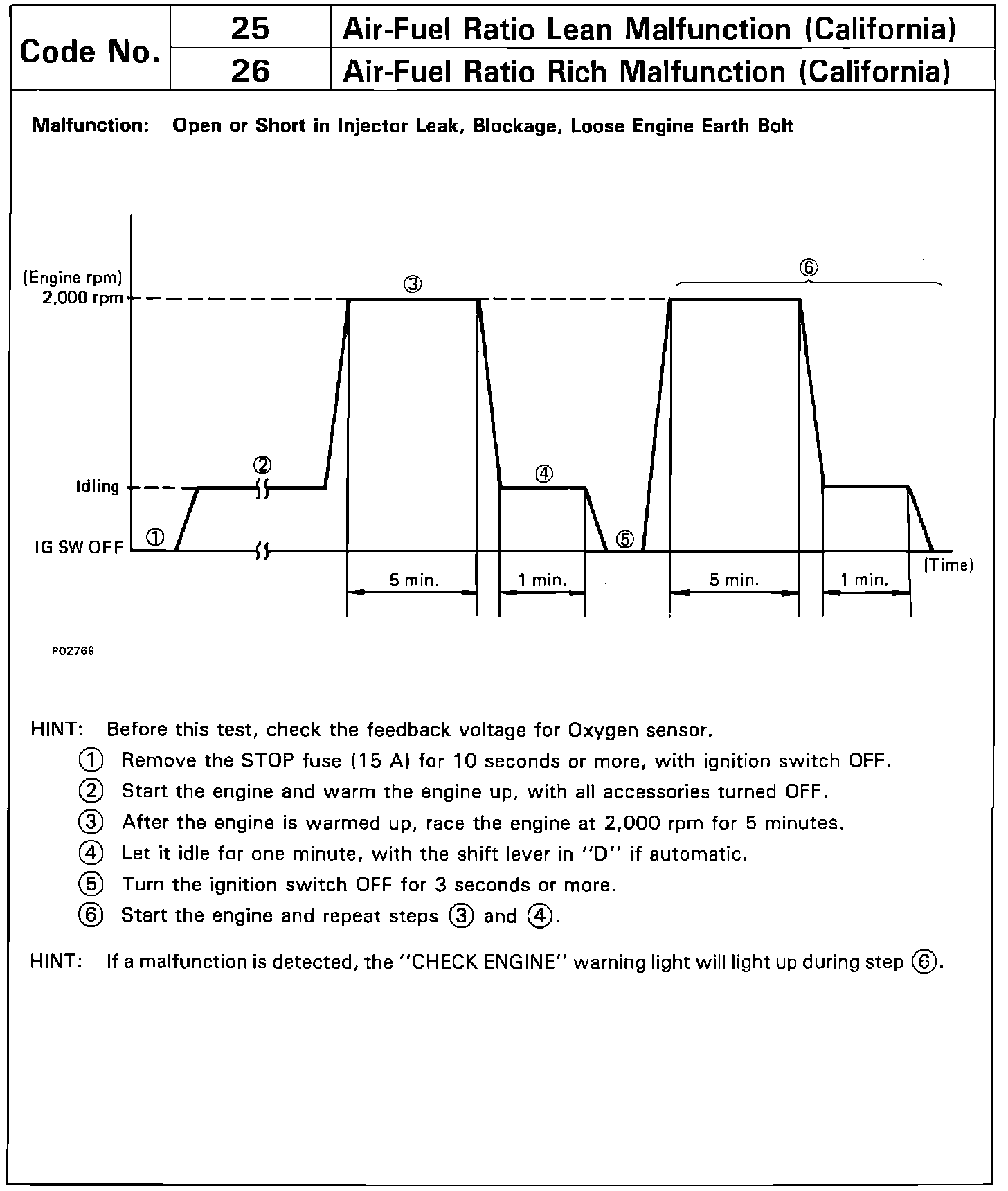 This combination of procedures is used to determine the cause of the mixture related fault, O2 signal or injector malfunction.