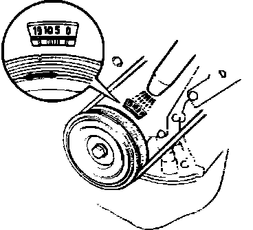 4. Using timing light, verify that the timing mark on timing cover is aligned with the mark on the crankshaft pulley. Fig. 74