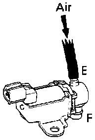 - Check that the air does not flow from port E to port F.