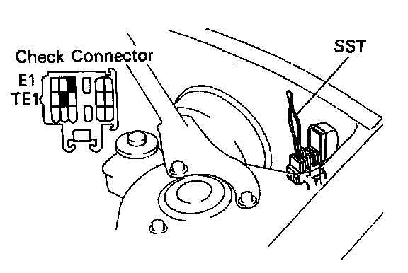 3. Using SST 09843-18020,connect terminals TE1 and E1 of the check connector.