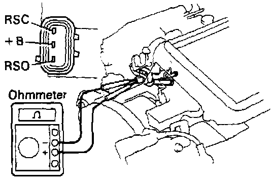 - Using an ohmmeter, measure the resistance between terminal +B and other terminals (RSC, RSO).