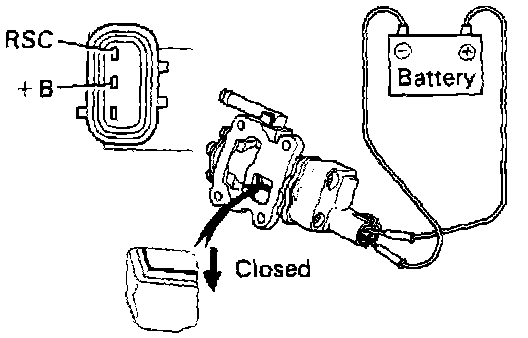 - Connect the positive (+) lead from the battery to terminal +B and negative (-) lead to terminal RSC and check that the valve is closed.