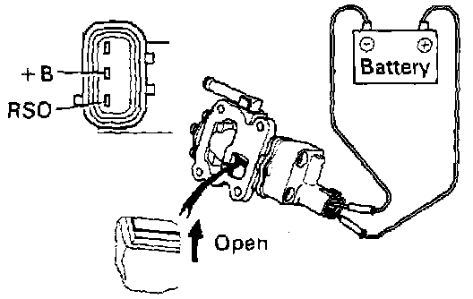 - Connect the positive (+) lead from the battery to terminal +B and negative (-) lead to terminal RSO, and check that the valve is open.