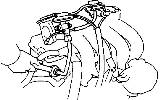 - Remove two bolts, EGR valve, vacuum modulator, vacuum hoses and gasket.