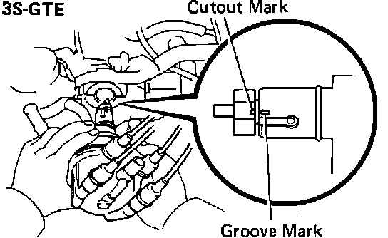 3. Align the cutout on the distributor shaft with the groove on the distributor housing. Install the distributor in the cylinder head.