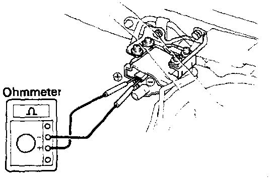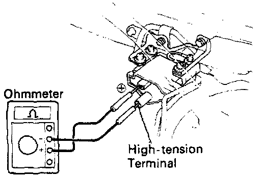 - Using an ohmmeter, measure the resistance between positive (+) and high-tension terminals.