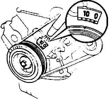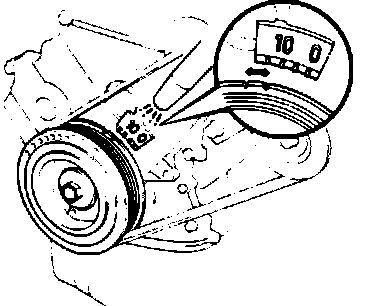 4. Using timing light, verify that the timing mark on timing cover is aligned with the mark on the crankshaft pulley.