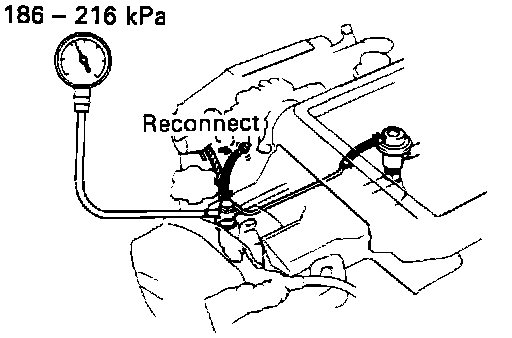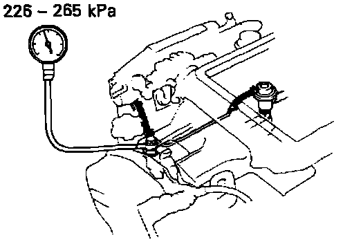 - If pressure is not as specified, check the vacuum sensing hose and fuel pressure regulator.