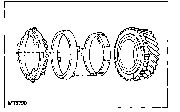 c. Place the synchronizer ring on the gear and align the ring slots with the shifting keys.