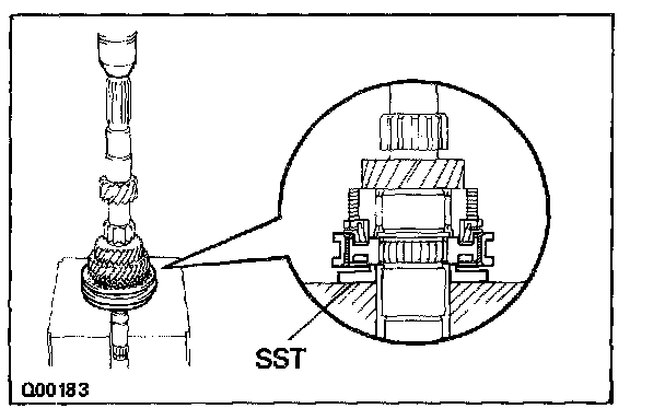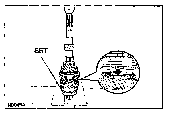 d. Using SST and a press, install the 3rd gear and No.2 hub sleeve.