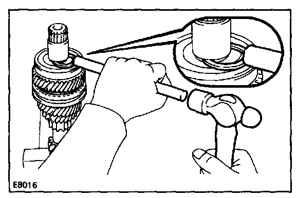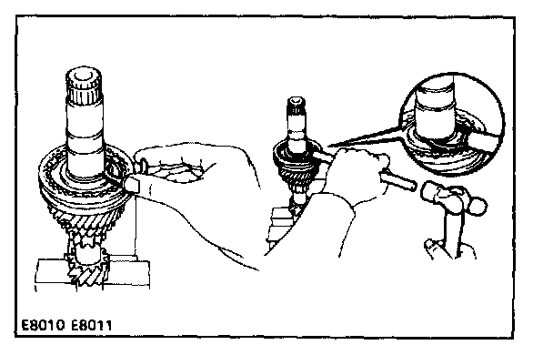 5. INSTALL SPACER, SYNCHRONIZER RING, NEEDLE ROLLER BEARINGS, FOURTH GEAR AND RADIAL BALL BEARING