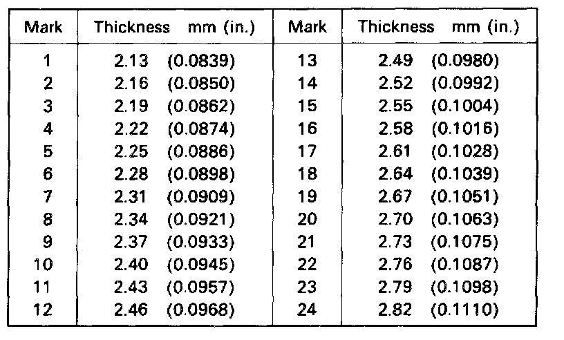 f. Referring to the table, select the plate washer which will ensure that the backlash is within specification. Try to select a washer of the same size.