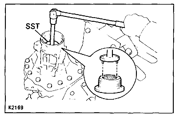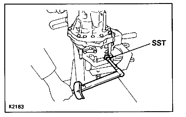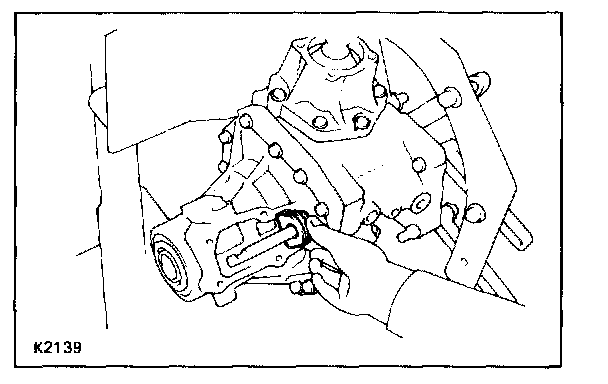 e. When the standard value for total preload is exceeded, remove the transfer right case, push in the adjusting nut and outer race. Again adjust the total preload.