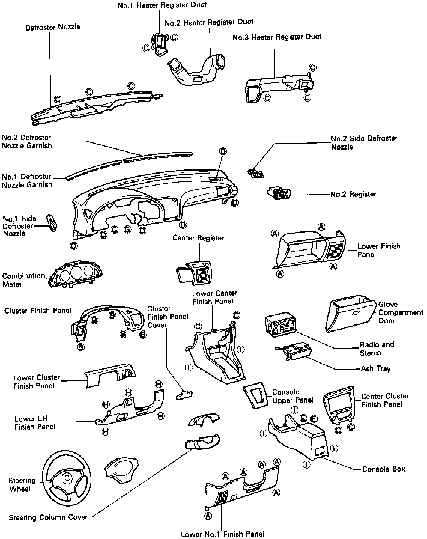 8. Remove center cluster finish panel, radio and lower center finish panel.