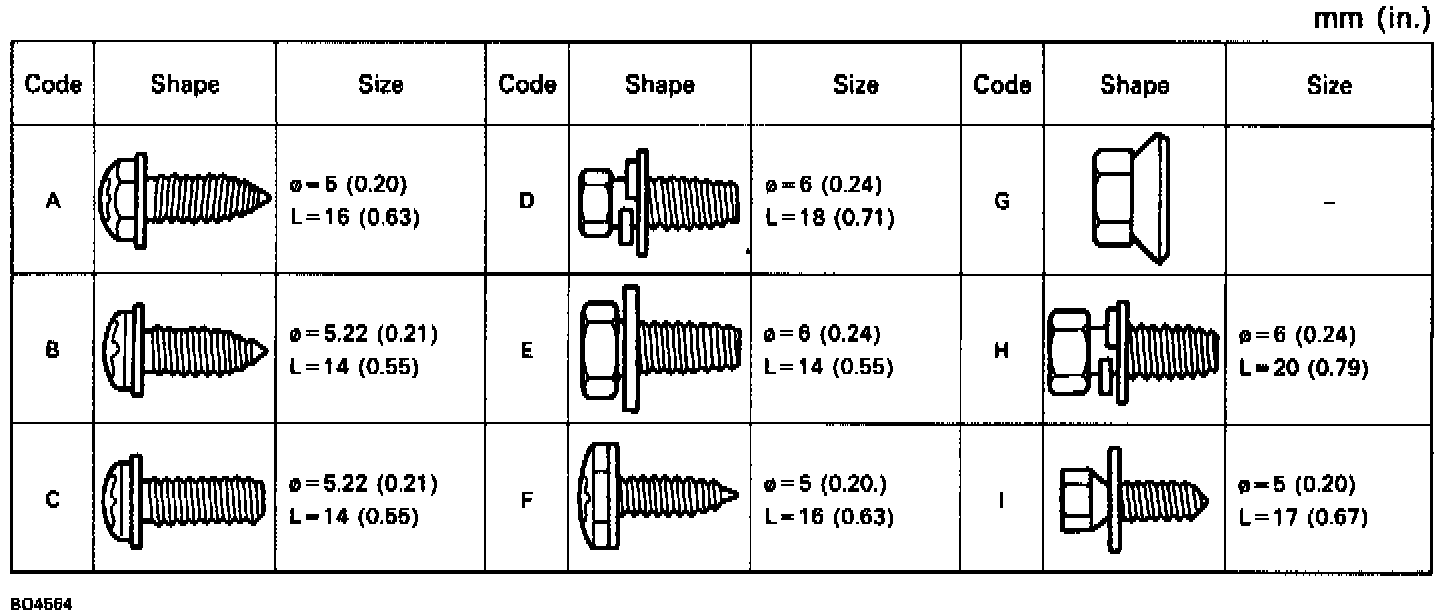 NOTE: screw sizes in the above image are indicated by the following code for removal and installation of safety pad.