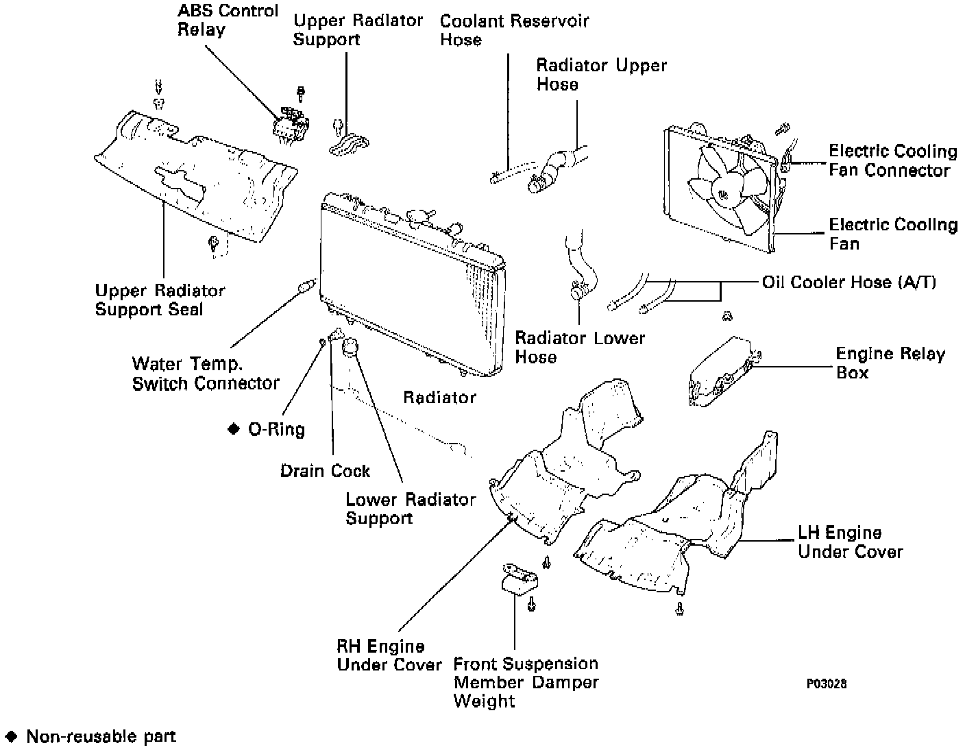 6. (with ABS) Disconnect ABS control relay from radiator.