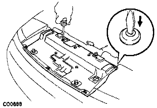 8. Remove the seven clips and three screws and remove the upper radiator support seal.