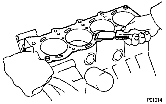 b. Using a gasket scraper, remove all the gasket material from the cylinder block surface.