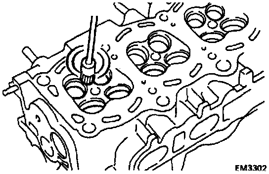 4. Clean valve guide bushings using a valve guide bushing brush and solvent, clean all the guide bushings.