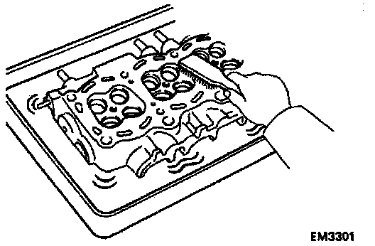 5. Clean cylinder head using a soft brush and solvent, thoroughly clean the cylinder head.