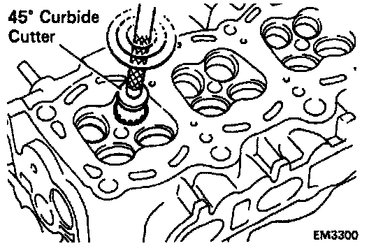 a. Using a 45° carbide cutter, resurface the valve seats. Remove only enough metal to clean the seats.