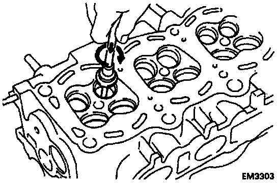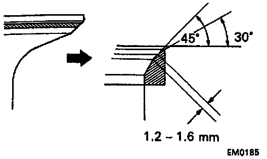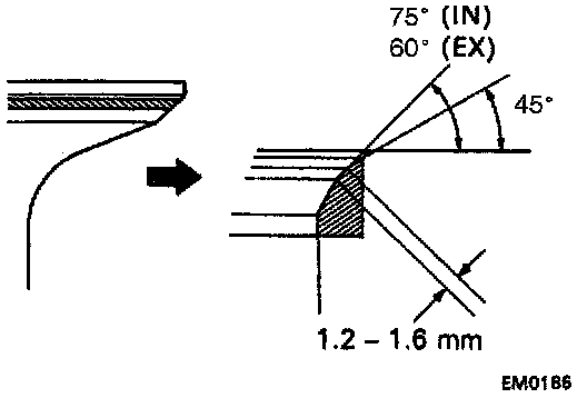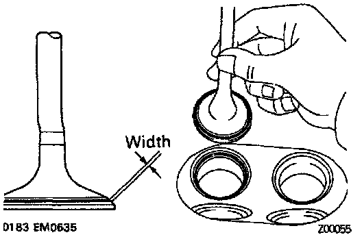 ^ Check that the seat contact is in the middle of the valve face with the following width: 1.0-1.4 mm (0.039-0.055 in)