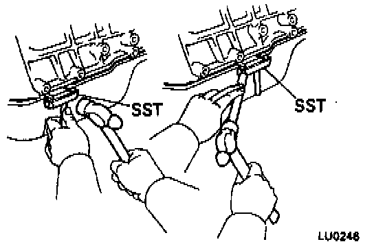 c. Insert the blade of SST 09032-00100 between the cylinder block and oil pan, cut off applied sealer and remove the oil pan.