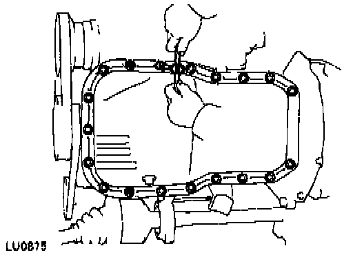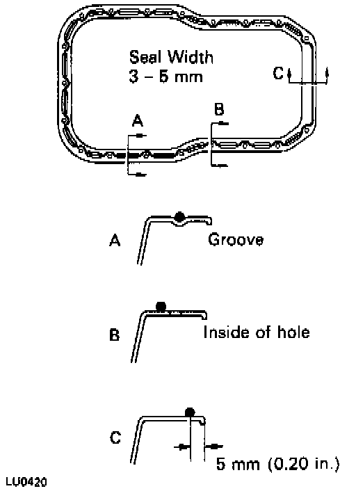 b. Apply seal packing to the oil pan as shown in the illustration.