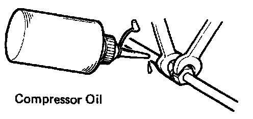 - Apply a few drops of compressor oil to 0-ring fittings for easy tightening and to prevent leaking of refrigerant gas.