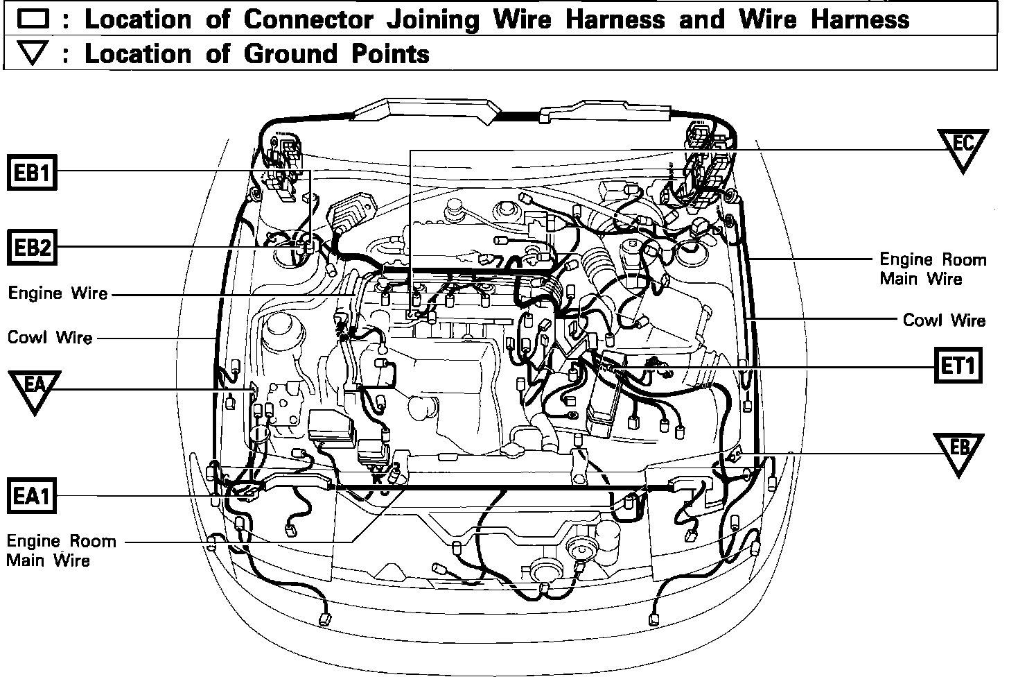 Locations Of Connector Joining Wire Harness, Wire Harness And Ground Points: