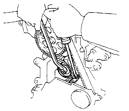 17. Remove timing belt from camshaft timing pulley.