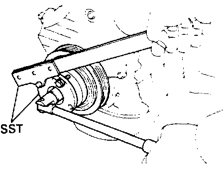 (a) Using SST 09213-54015 (09214-00030) and 09330-00021, remove the pulley bolt.