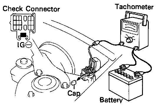 b. Connect the test probe of a tachometer to the service connector of the distributor.