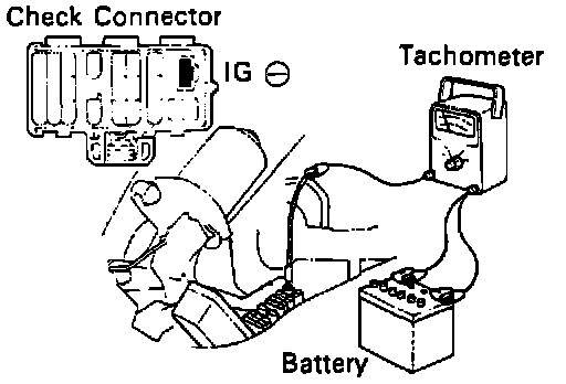 - Connect the test probe of a tachometer to terminal IG- of the check connector.