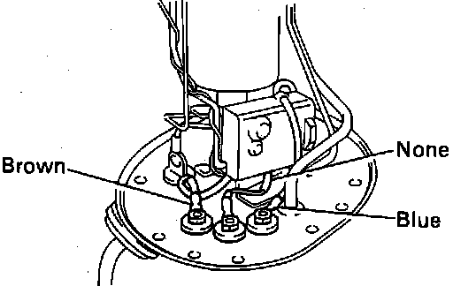 14. Remove the two nuts from the fuel pump wires and remove the fuel hose from the top of the fuel pump.