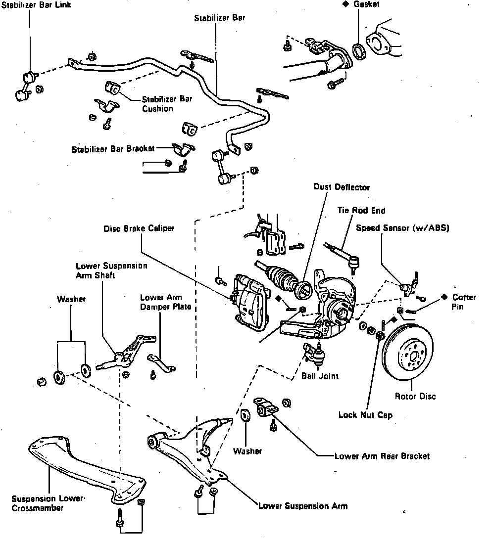 3. Remove attaching nut, then disconnect stabilizer link from lower suspension arm.