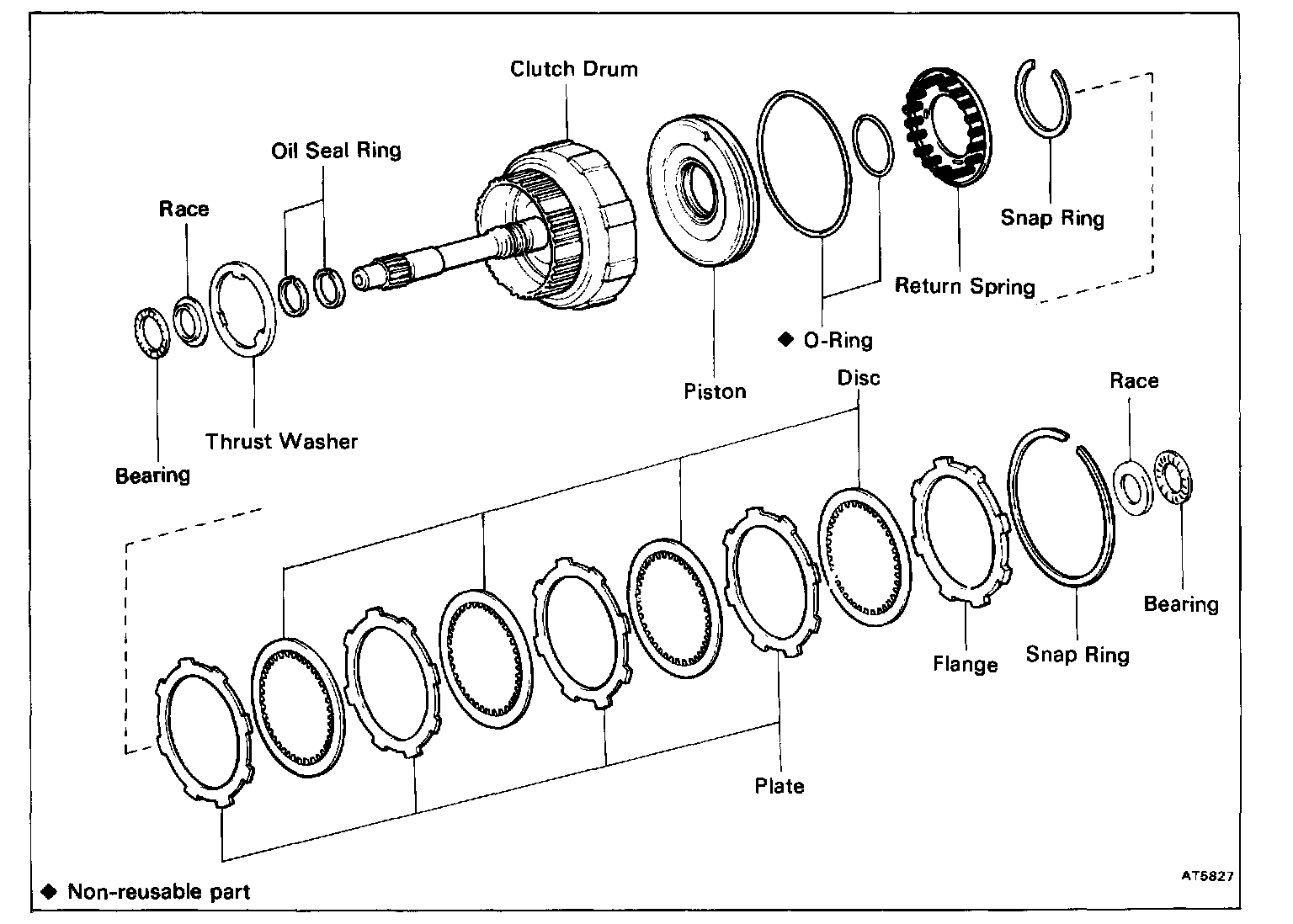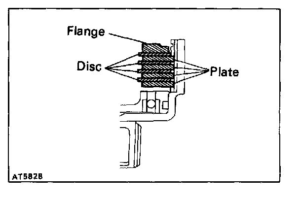 Check that the sliding surface of disc, plate and flange worn or burnt. If necessary, replace them.