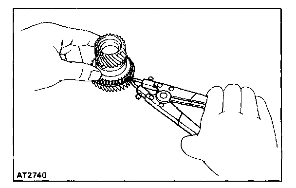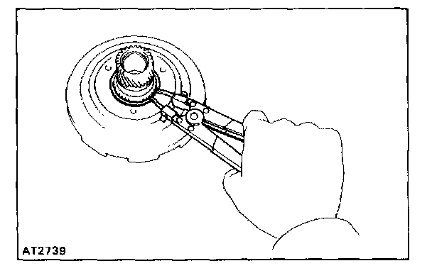 Using snap ring pliers, remove the shaft snap ring from the sun gear.