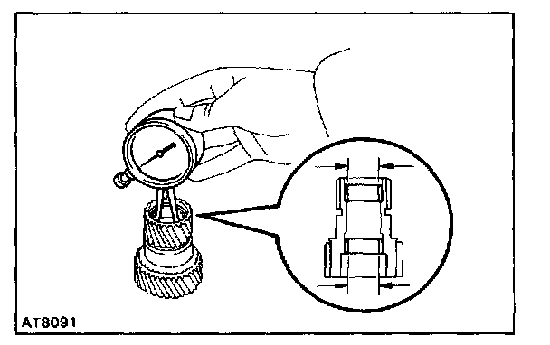 Using a feeler gauge, measure the planetary pinion gear thrust clearance.