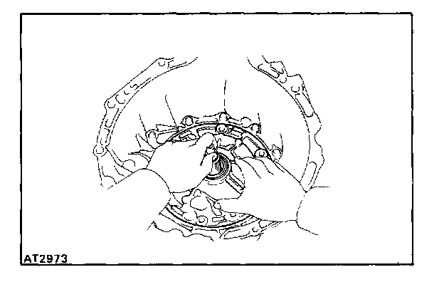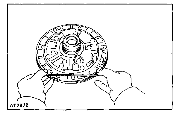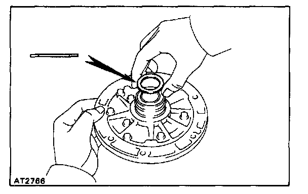 NOTE: Do not push on the oil pump strongly, or the oil seal ring will stick to the direct clutch drum.