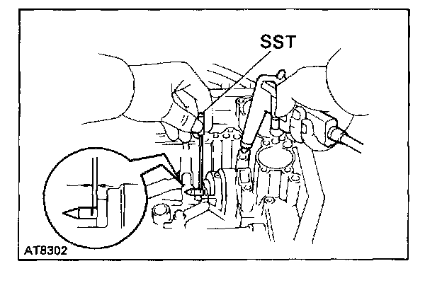 b. Using SST, measure the piston stroke applying and releasing the compressed air (392 - 785 kPa, 4 - 8 kg/sq.cm, 57 - 114 psi) as shown.