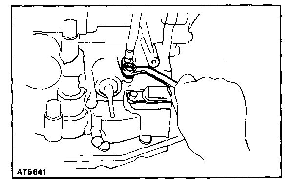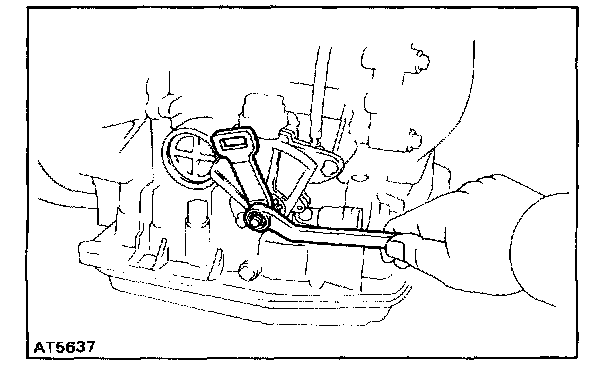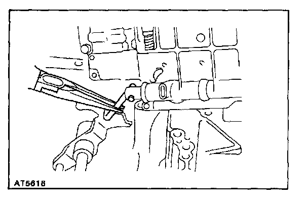 c. Check that the manual valve lever is in contact with the center of the roller at the tip of the detent spring.