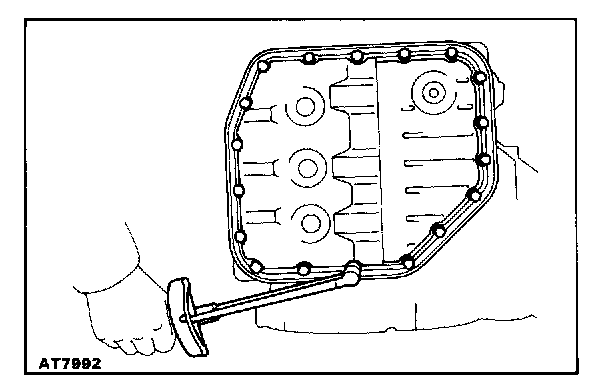 a. Install a new gasket to the oil pan and install them to the transmission.